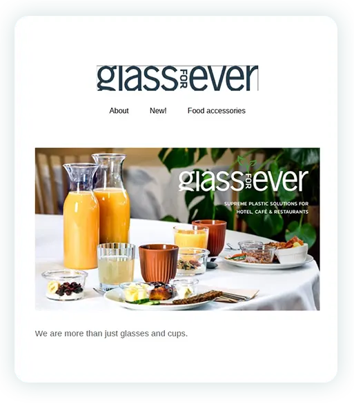Sales of unbreakable drinking glasses, jugs, plates and similar serving products in special plastic materials.
