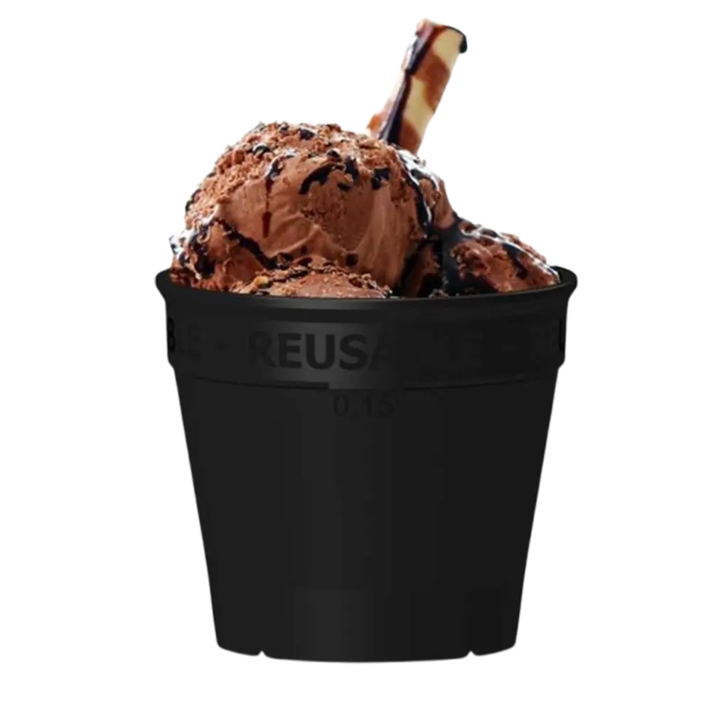 NO MORE SINGLE USE! After many years of use, the drinking glasses are not discarded in the rubbish bin. Instead, we collect and transport them to our factory in Denmark, where we grind the used material and use it to produce new, recyclable and ecofriendly products. No waste. We recycle 100% of our products, and we have created a recycling system that takes responsibility for the environment.