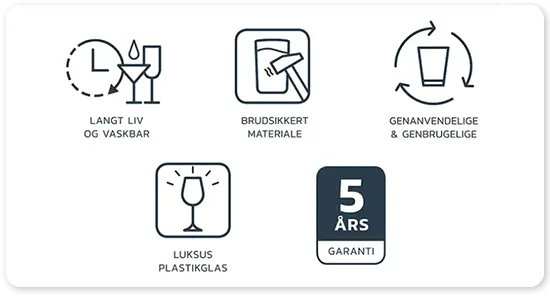 This glass is off the highest standard and are second to none within the unbreakable plastic products market. Main focus is on design, supreme raw material and the environment - 100% recyclable and reusable.