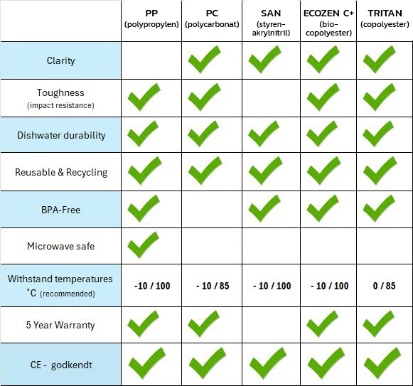 We continuously check and test all our products. We also follow developments where we test new products and new types of plastic in order to constantly optimize our own products so that they meet the latest recommendations for food and environmental requirements in Denmark and the EU.