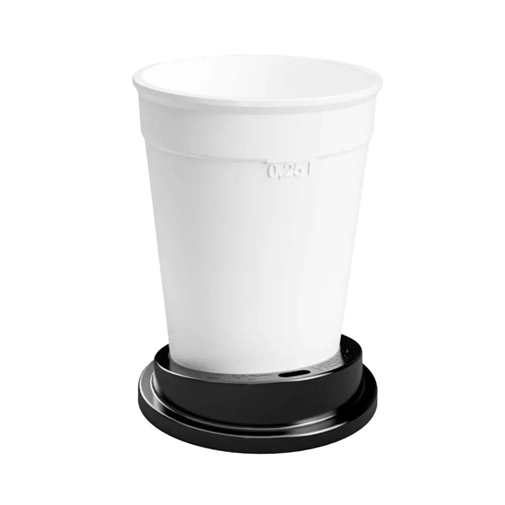NO MORE SINGLE USE! After many years of use, the drinking glasses are not discarded in the rubbish bin. Instead, we collect and transport them to our factory in Denmark, where we grind the used material and use it to produce new, recyclable and ecofriendly products. No waste. We recycle 100% of our products, and we have created a recycling system that takes responsibility for the environment.