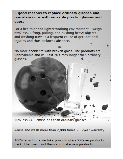 It is about doing things in a new way. One of the solutions is to extend the life of products by reusing, using shatterproof products with a long service life and recycling. In this way, we consume fewer of nature’s raw materials and avoid the need for destructive incineration or broken glasses and cups. For this reason, we have created glassFORever, which is the business community’s alternative to glasses and cups. We recycle the plastic so that nature does not suffer – we call it the glassFORever recycling system.