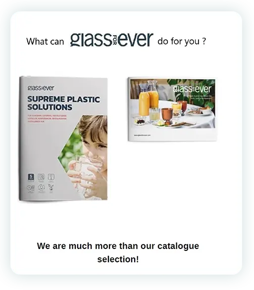 Sales of unbreakable drinking glasses, jugs, plates and similar serving products in special plastic materials.