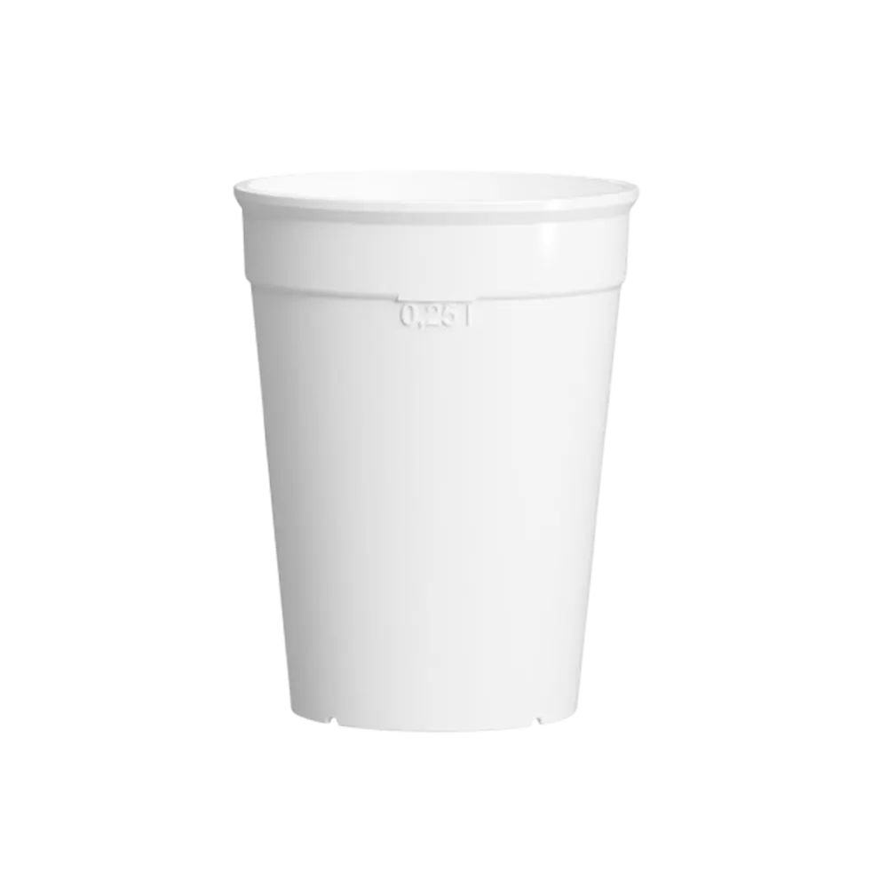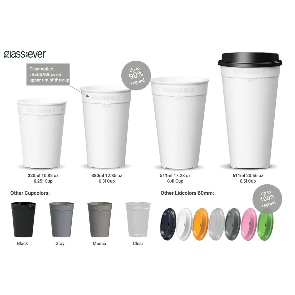 NO MORE SINGLE USE! After many years of use, the drinking glasses are not discarded in the rubbish bin. Instead, we collect and transport them to our factory in Denmark, where we grind the used material and use it to produce new, recyclable and ecofriendly products. No waste. We recycle 100% of our products, and we have created a recycling system that takes responsibility for the environment.